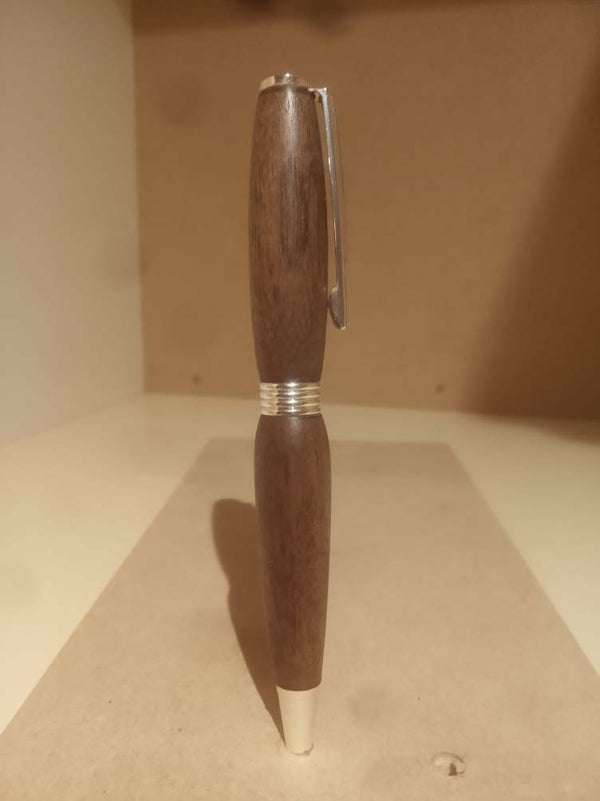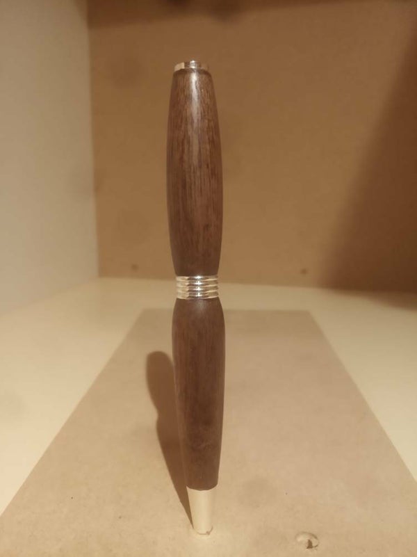 Bespoke wooden pen handcrafted from walnut with a silver plated slimline twist pen kit.